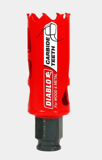 Diablo introduces Carbide Teeth Hole Saws, the first hole saws on the market to cut both wood and metal (wood, nail-embedded wood, plastic, aluminum, metal, cast iron, stainless steel and metal). Delivering up to 50X longer cutting life than bi-metal, these new carbide teeth hole saws offer faster cutting performance and increased productivity.