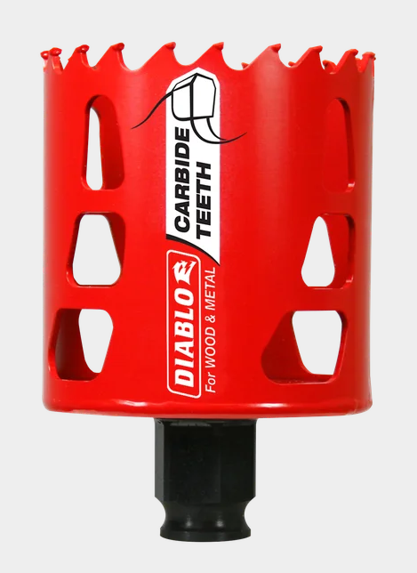 Diablo introduces Carbide Teeth Hole Saws, the first hole saws on the market to cut both wood and metal (wood, nail-embedded wood, plastic, aluminum, metal, cast iron, stainless steel and metal). Delivering up to 50X longer cutting life than bi-metal, these new carbide teeth hole saws offer faster cutting performance and increased productivity.