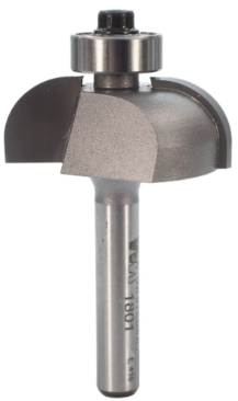 - TOOL SPECS: Carbide-tipped, cove bit with 3/8" radius, 1-1/4" large diameter, 1/4" shank, 1/2" cutting length, and B3 bearing for use with 1/4" collets.