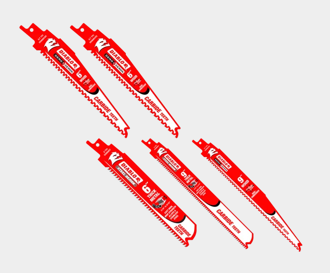 Diablo's Steel Demon™ and Demo Demon™ Carbide Teeth Reciprocating Blade Set consists of three Demo Demon blades for nail-embedded wood and two Steel Demon blades. This carbide teeth reciprocating saw blade set allows PROs to blaze through multiple materials, including nail-embedded wood, clean wood, cast iron, high strength alloys, stainless steel, tubing and more wood amazing ease. Get faster wall teardowns and framing materials or slice through a variety of metal pipes, bars and beams up to 9/16". Diablo's High performance TiCo™ Hi-Density carbide delivers an unmatched up to 50X longer blade life than standard bi-metal blades. Thanks to an oversized 1" body height, the blades provide greater durability, straighter cuts and less vibration across all cutting applications.