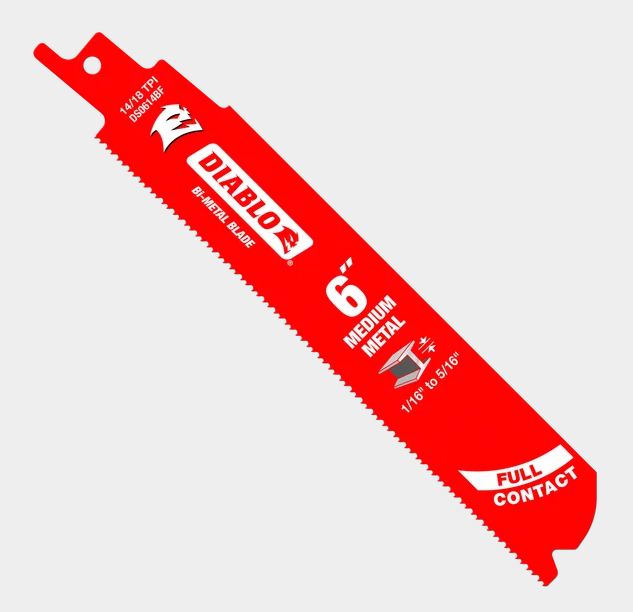 Diablo's next generation reciprocating saw blades with Full Contact Arched Design are specifically designed for maximum performance in metal cutting applications. The blade’s Full Contact Arched Design with ultra hardened cutting edge provides faster cuts in fewer passes resulting in less heat build-up to deliver 5x longer cutting performance than those of standard blades.
