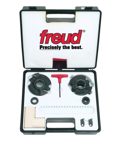 Freud's revolutionary system for making cabinet doors combines the flexibility of standard insert tooling with the performance of resharpenable TiCo™ Hi-Density Carbide Knives. This gives cabinetmakers the ability to offer over 18 profiles of rail and stiles for cabinet doors at a fraction of the cost of fixed knife cutters. These cutters are packed with special features like: eased panel slot edges to prevent splintering and improve finishing, zero down time to switch from the moulding cut to the cope cut with matched reverse sets, and profiles that always match even after resharpening. The RS1000 set contains both cutter heads (RS-S, RS-R), groover knives (RS-K), and the glass door and back tenon knife (RS-L). Profile knives can be purchased separately. The RS2000 contains everything in the RS1000, plus nine different pairs of profile knives. Both sets come with a sample of a rail and stile and complete manual for easy setup. Additional heads can be purchased separately.