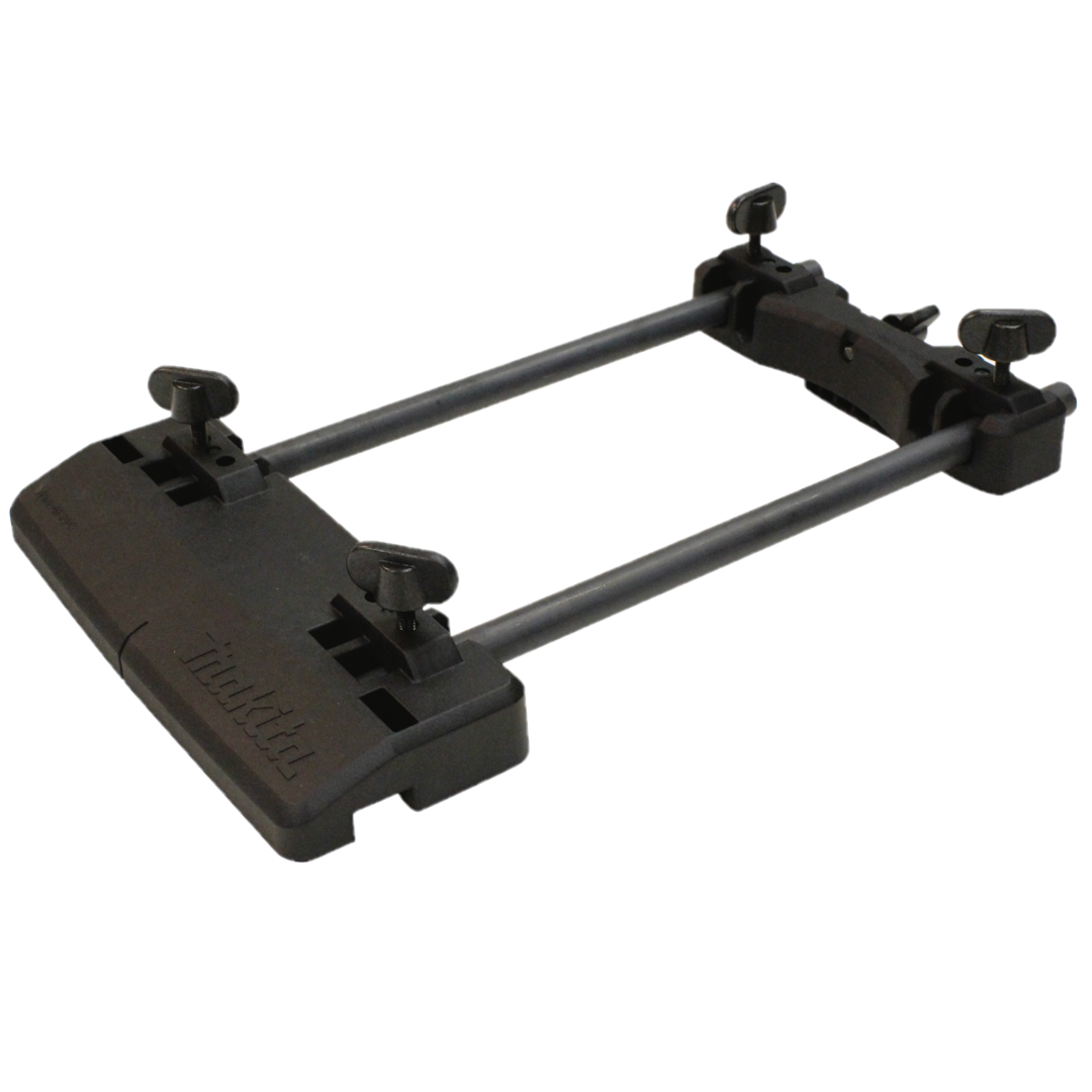 The Makita Router Guide Rail Adapter (194579-2) is for use with the Makita 55 in. Guide Rail (194367-7) or 118 in. Guide Rail (194368-5). The guide rail adapter features heavy duty construction for longer life. When used with select routers (not included) the Router Guide Rail Adapter is ideal for dadoing, mortising, and trimming applications.