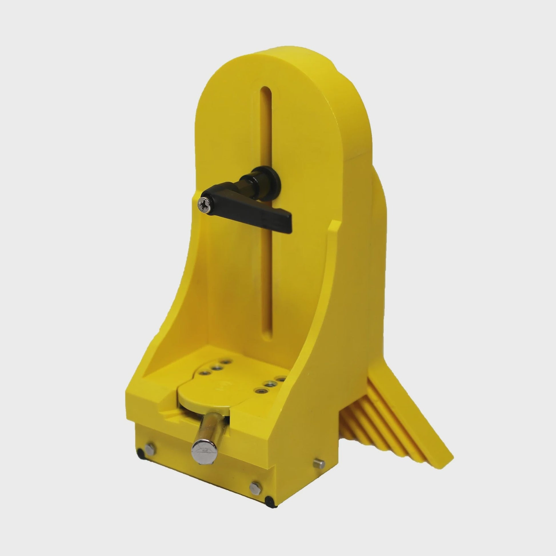 The Pro Vertical Featherboard is a table saw safety attachment that pushes the workpiece down against the table during feeding to prevent ride-up and kickback. Attach it to ferrous Biesemeyer-style table saw fences between the low-friction guide faces and adjust the feathers vertically to match the height of the workpiece. It can be paired with a second Pro Vertical featherboard for downward pressure on a workpiece before and after the saw blade.