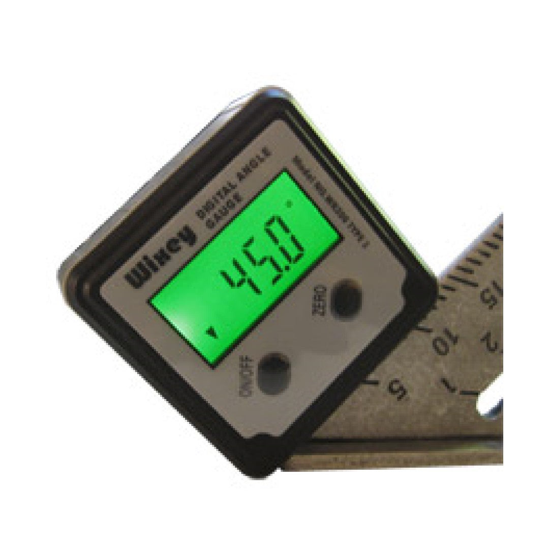 The Wixey Digital Angle Gauge accurately sets saw blade bevel angle. It has 0.1 degree resolution, uses a single AAA battery, and works great for miter saws, table saws and other machinery set up.